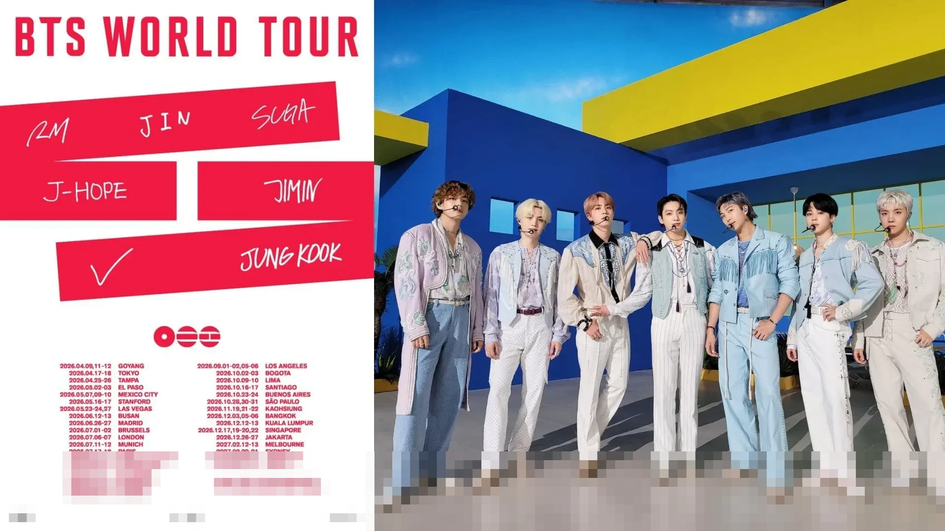 Dalam pengumuman tersebut, Jakarta tercantum sebagai salah satu kota tujuan tur dunia RM, Jin, Suga, J-Hope, Jimin, V, dan Jungkook. Ini sekaligus mengakhiri spekulasi panjang soal kemungkinan BTS kembali menyapa penggemar Tanah Air.